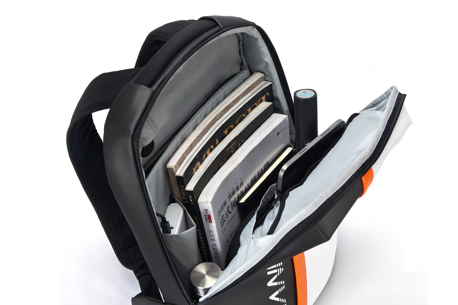 6⼤储存空间,科学分区,各得其所;20L大容量,容纳15.6寸笔记本电脑;移动电源仓位